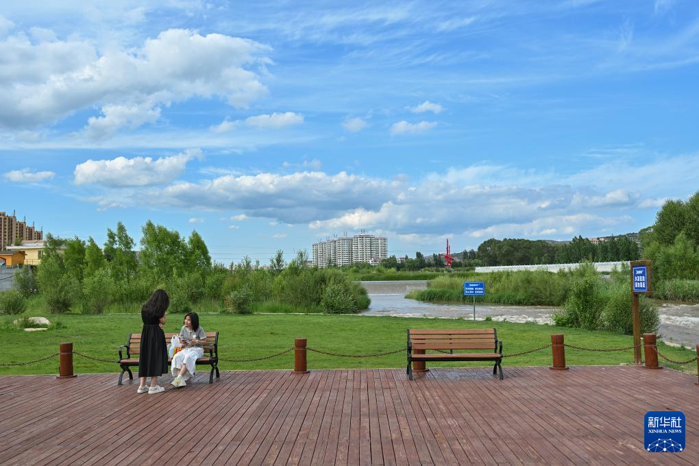 市民在山西省忻州市静乐县汾河川国家湿地公园休闲(7月1日摄)。