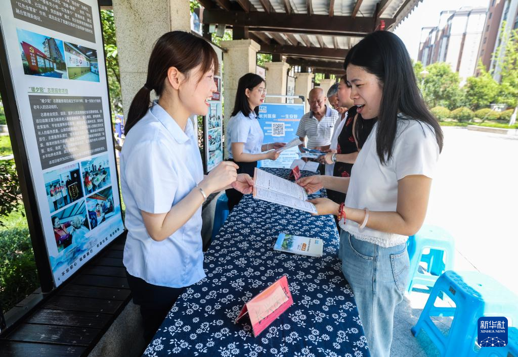 7月3日,长兴县医保局工作人员在太湖图影旅游度假区山湖花园社区向村民宣传医保政策。