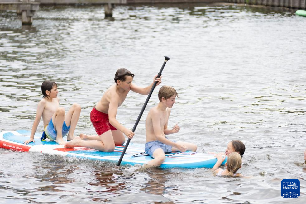 7月2日,在荷兰哈勒姆,孩子们在水中纳凉玩耍。