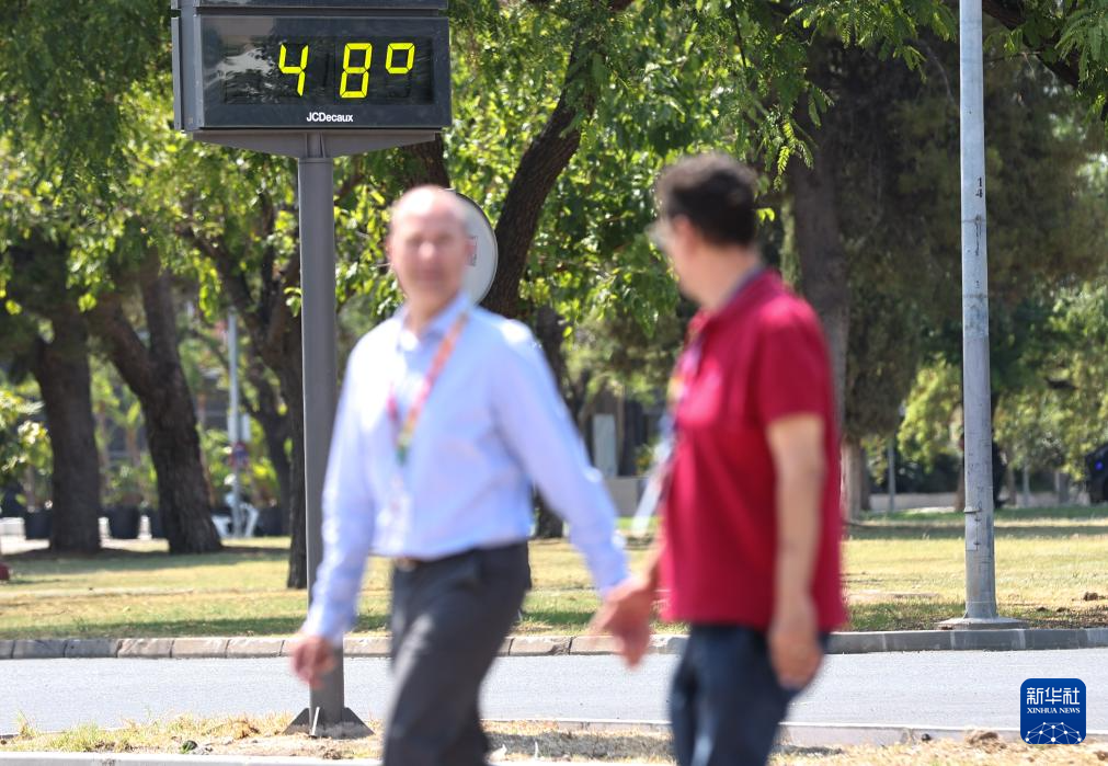 6月29日,在西班牙塞维利亚,室外温度计显示48摄氏度高温。