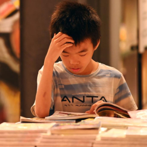 7月4日,在南宁市一家新华书店,一名学生在阅读书籍。