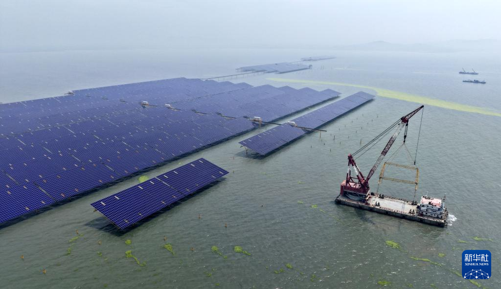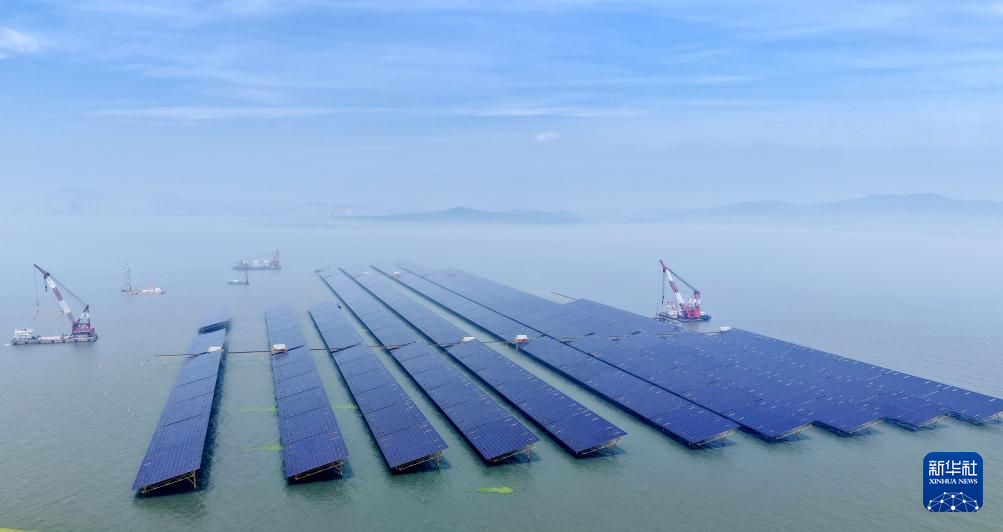 青岛市即墨区鳌山湾海域的海上光伏项目区(7月3日摄,无人机照片)。