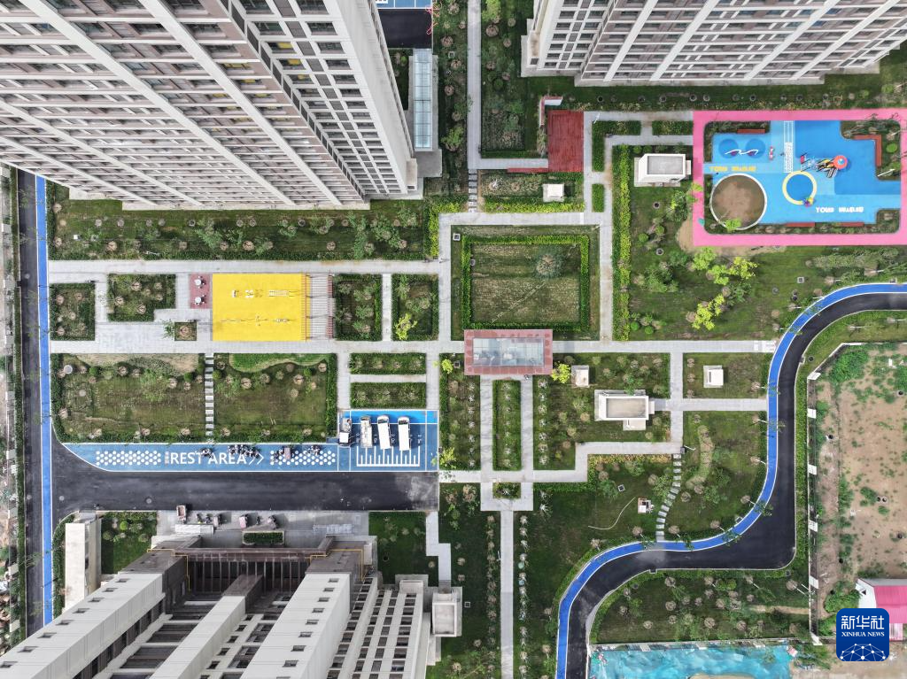 这是7月3日拍摄的保定市城中村改造小营坊安置区项目内的绿地(无人机照片)。