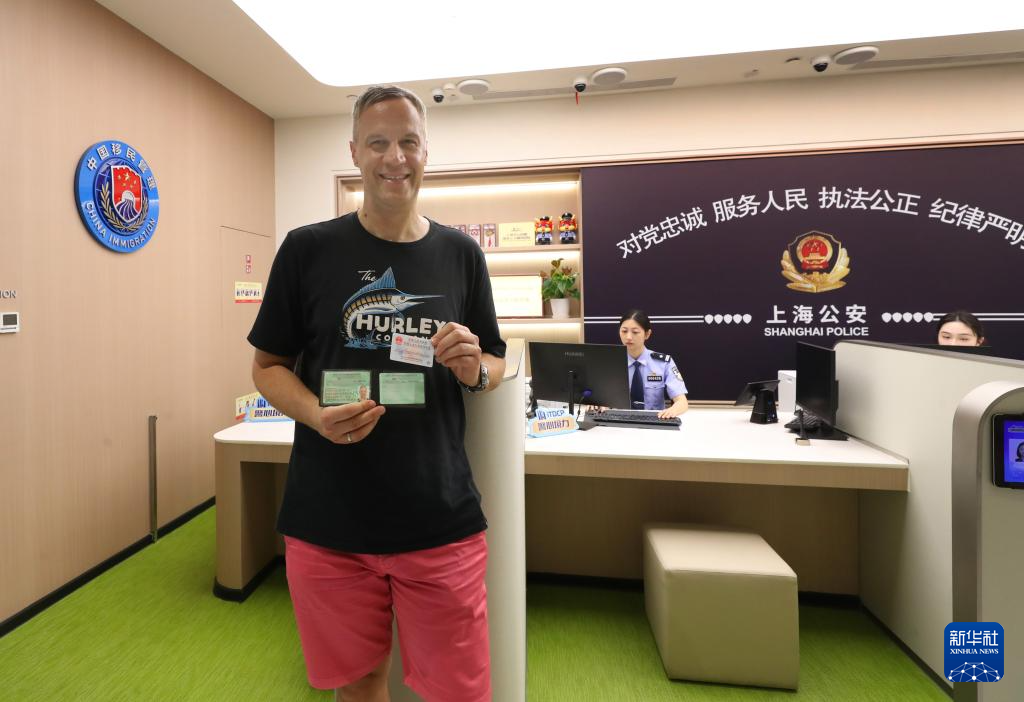 7月4日,一名外籍人士展示他在直联平台同时办理完成的永居证和驾驶证。