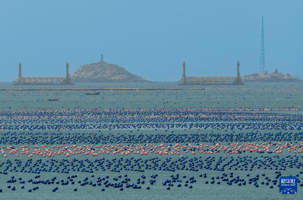 这是连江黄岐半岛海域海投国家级海洋牧场全景(7月3日摄,无人机照片)。