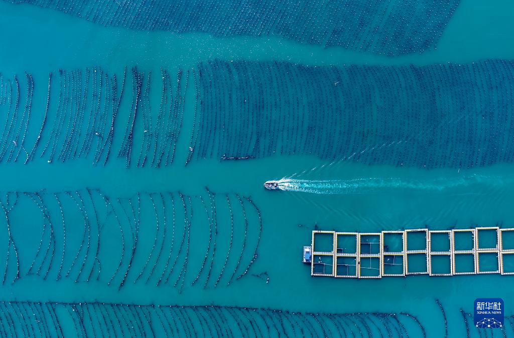 这是福建省连江黄岐半岛海域海投国家级海洋牧场一角(7月3日摄,无人机照片)。