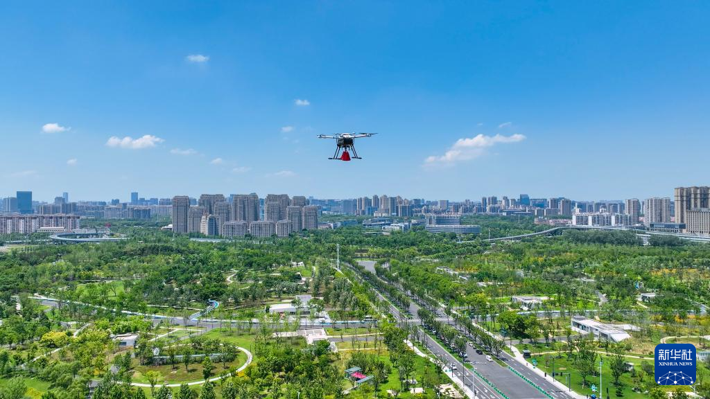 无人机在安徽省合肥市岸上草原配送外卖(2024年4月29日摄,无人机照片)。
