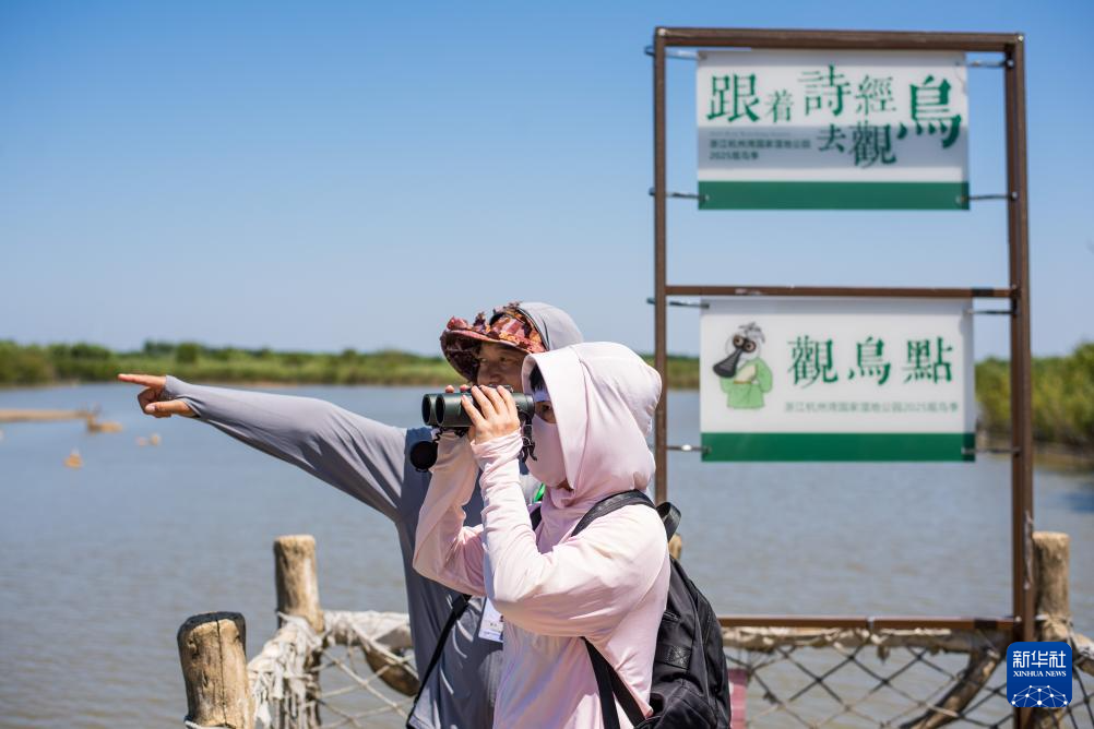 位于浙江省宁波市的杭州湾国家湿地公园水草丰美,鸟类众多。2025年杭州湾国家湿地公园观鸟季以“《诗经》里的飞鸟”为主题,设计了一条独具特色的观鸟线路。该线路配有专业的观鸟志愿者,随行为游客讲解《诗经》中提到的属于该湿地的动植物原型,并为游客深入解读鸟类的习性、种类以及湿地生态知识,吸引了许多游客前来体验。
