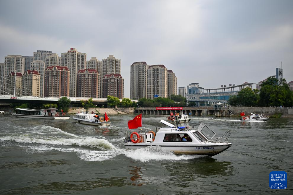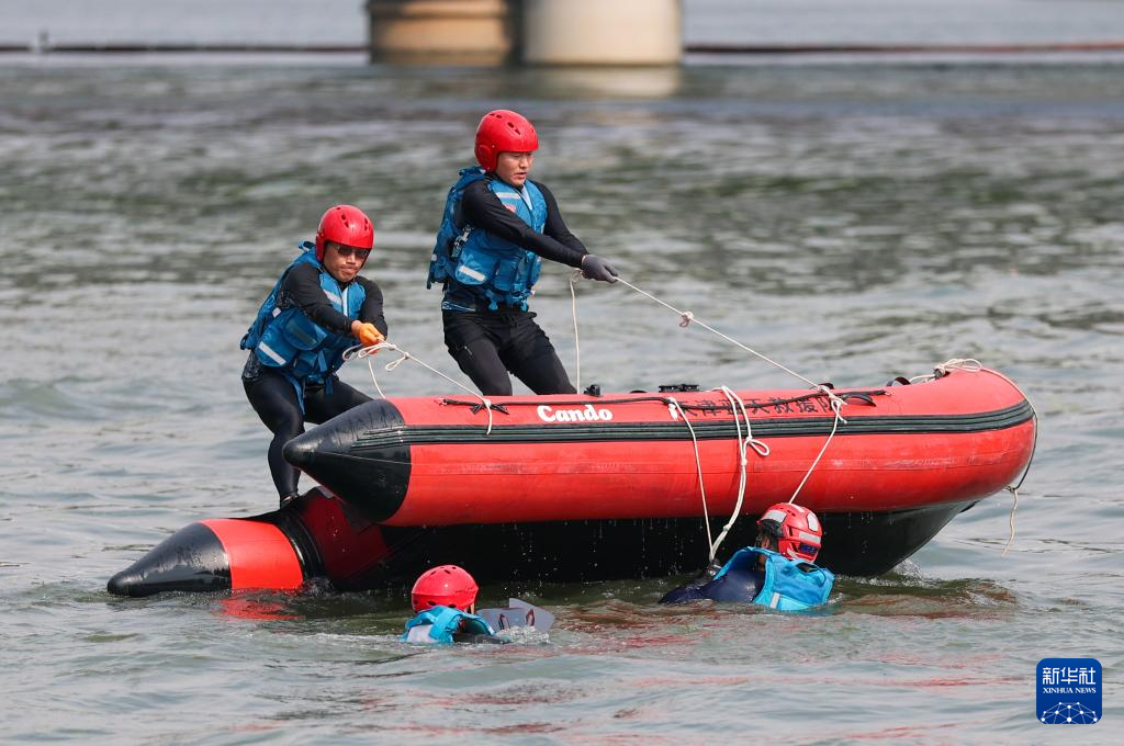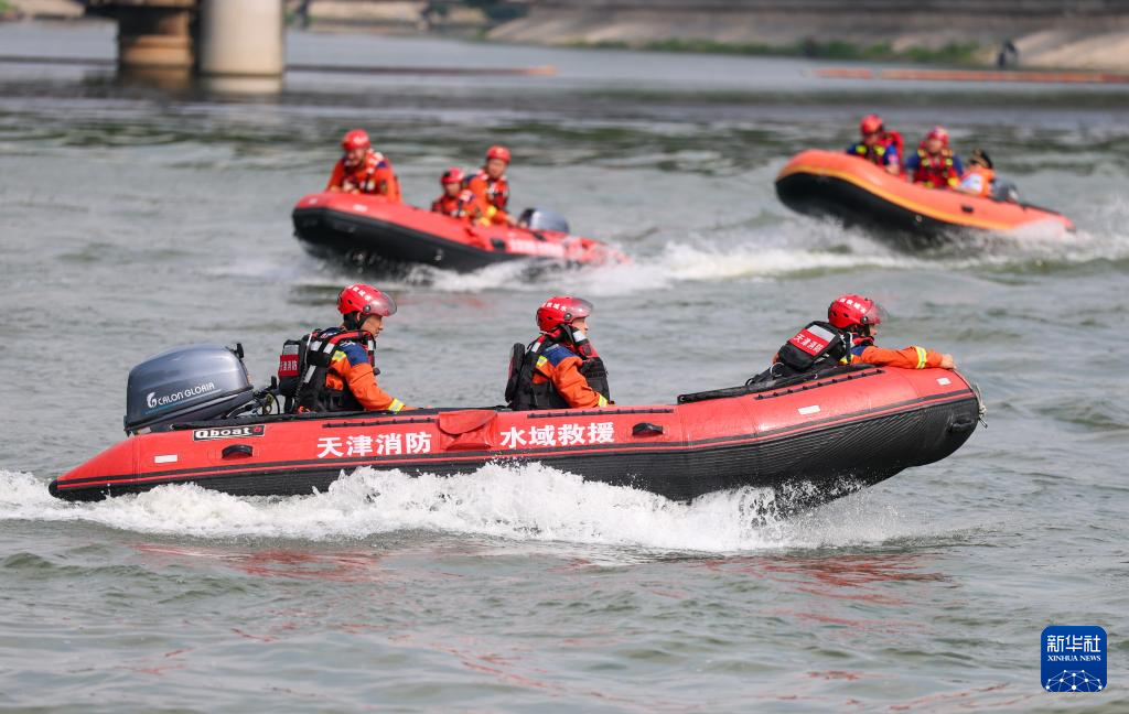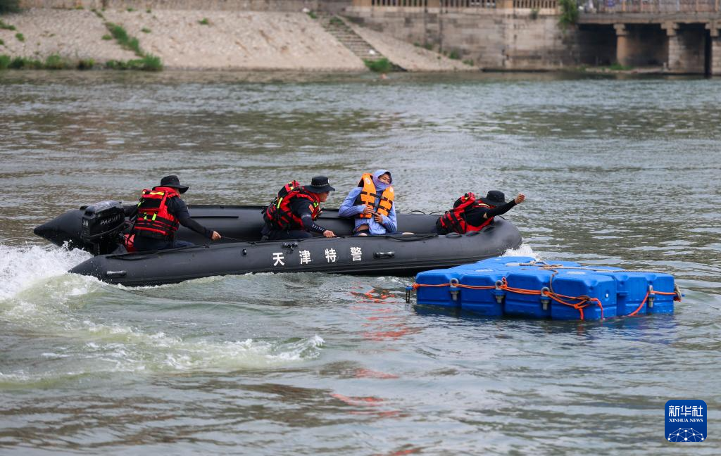 当日,天津市公安局联动天津市应急管理局、市消防救援总队、蓝天救援队等在天津海河耳闸水域联合开展2025年防汛救援暨水上突发事件应急处置联合演练。