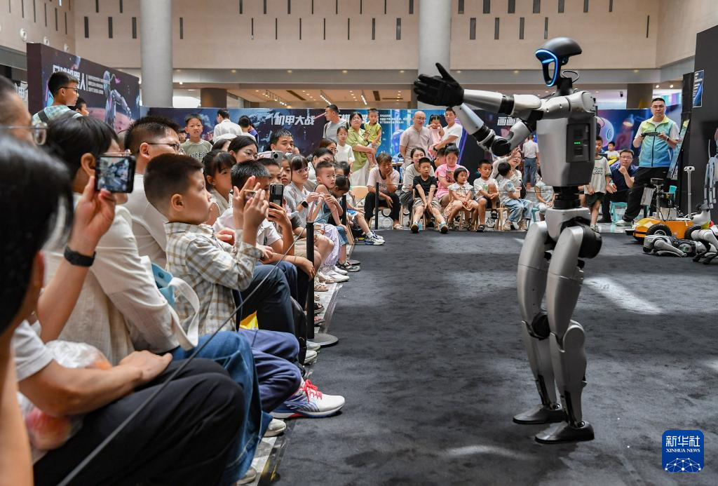 当日,浙江省金华市金华之光文化广场科技馆举办AI智能机器人科普展,吸引了许多家长带着小朋友与人形机器人、智能机器狗、下棋机器人、足球机器人等互动,沉浸式感受人工智能技术的魅力,乐享暑期生活。
