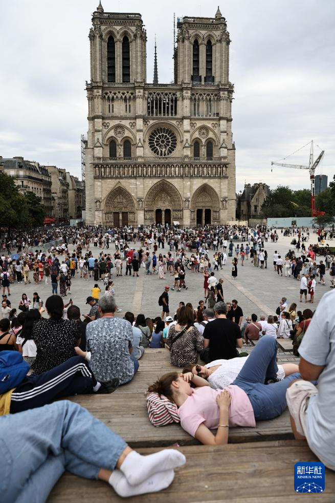 7月5日,人们在法国巴黎圣母院前休憩。