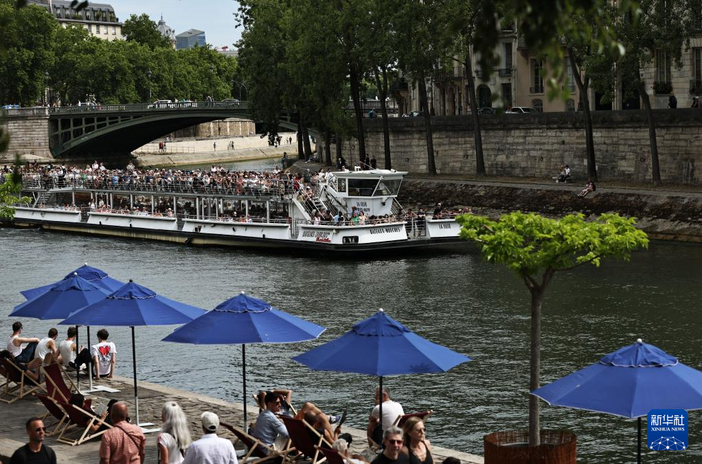 7月5日,人们在法国巴黎塞纳河边消暑休闲。