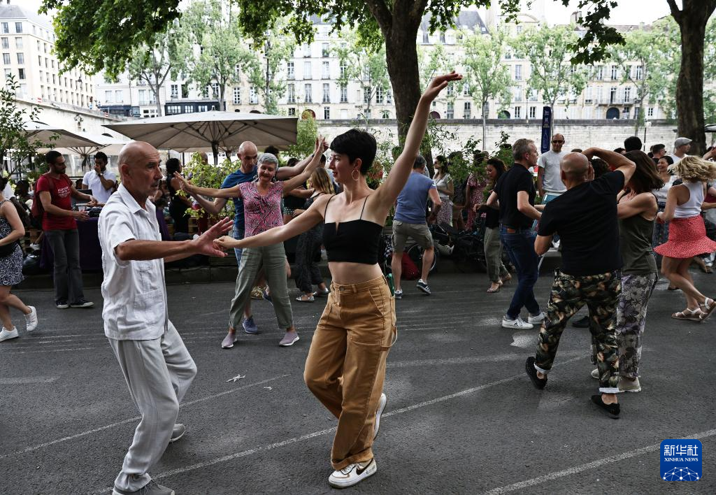 7月5日,人们在法国巴黎塞纳河边跳舞。