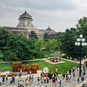7月5日,游客在位于新民大街的伪满司法部旧址(吉林大学白求恩医学部)参观。