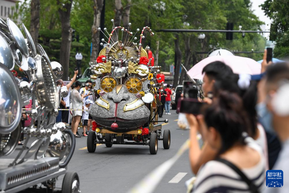 7月5日,游客在长春历史文化博物馆前观看表演(无人机照片)。