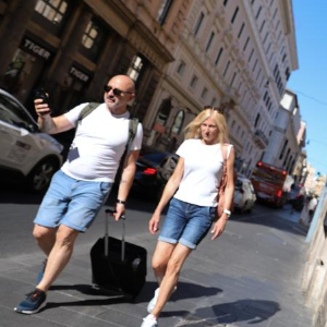 7月5日,一名女子提着购物袋走在意大利罗马街头。