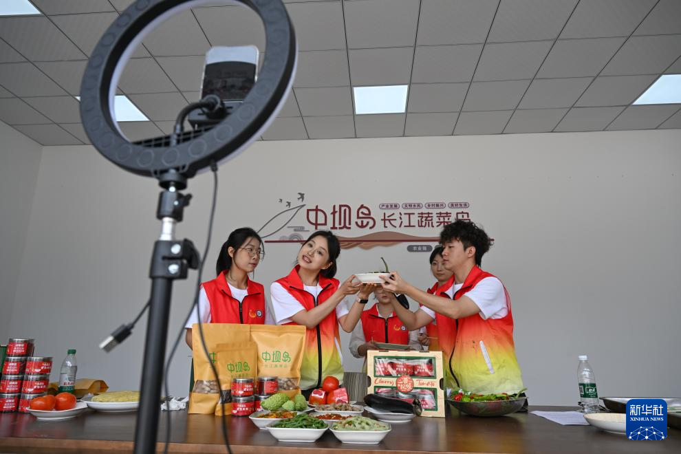 7月7日,志愿者们在巴南区中坝岛直播带货。