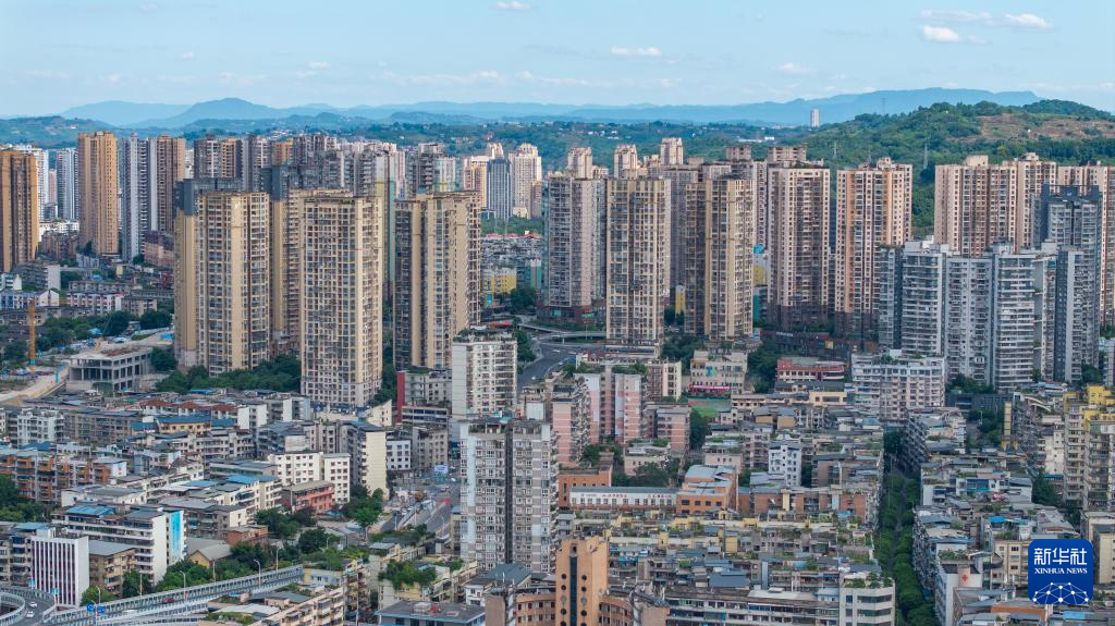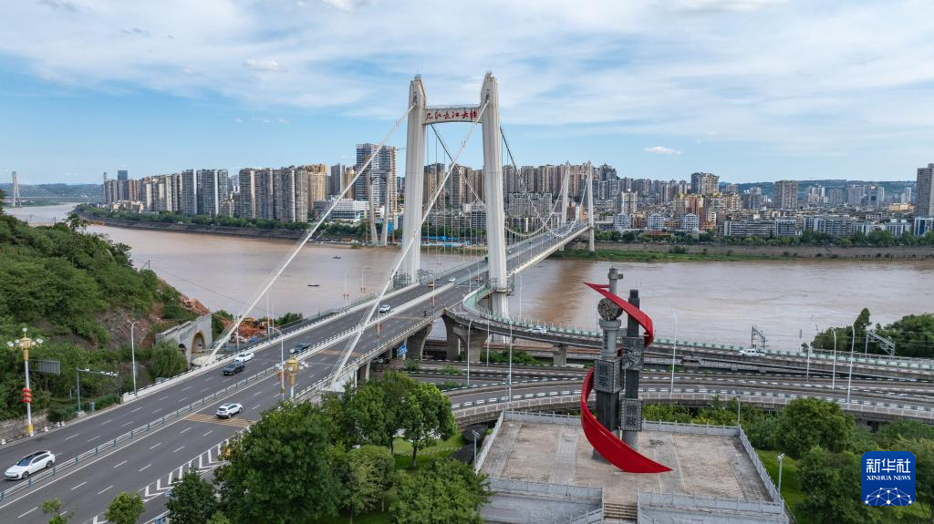 在几江长江大桥北岸,城市楼群沿着山坡而建,远远望去,仿佛是从崖壁上自然生长出的一片垂直森林,充满了生机与活力。