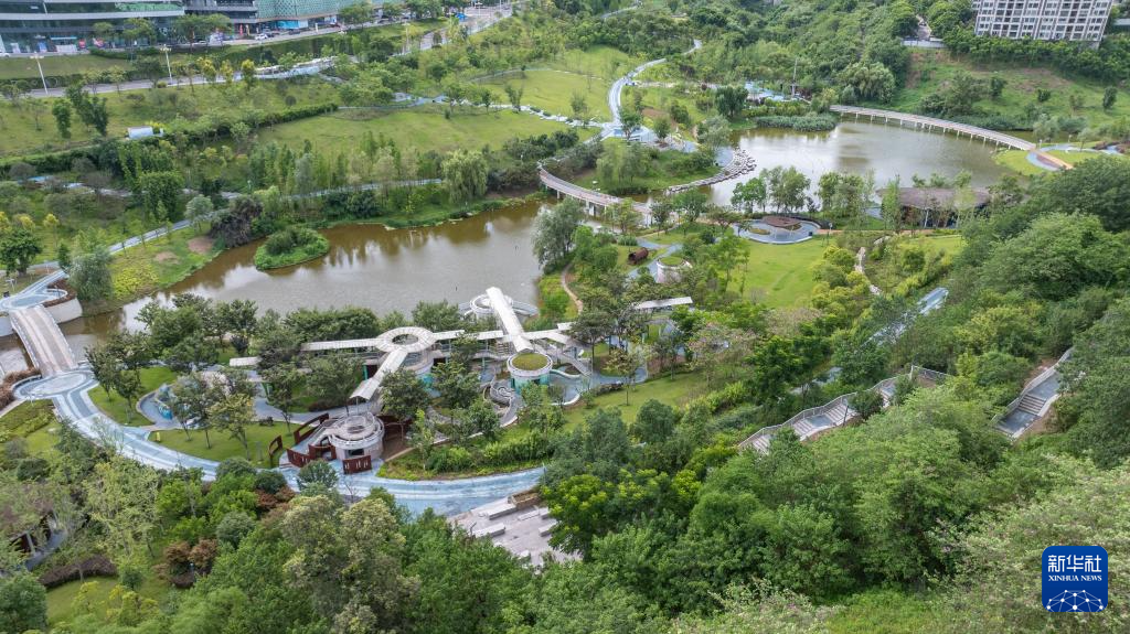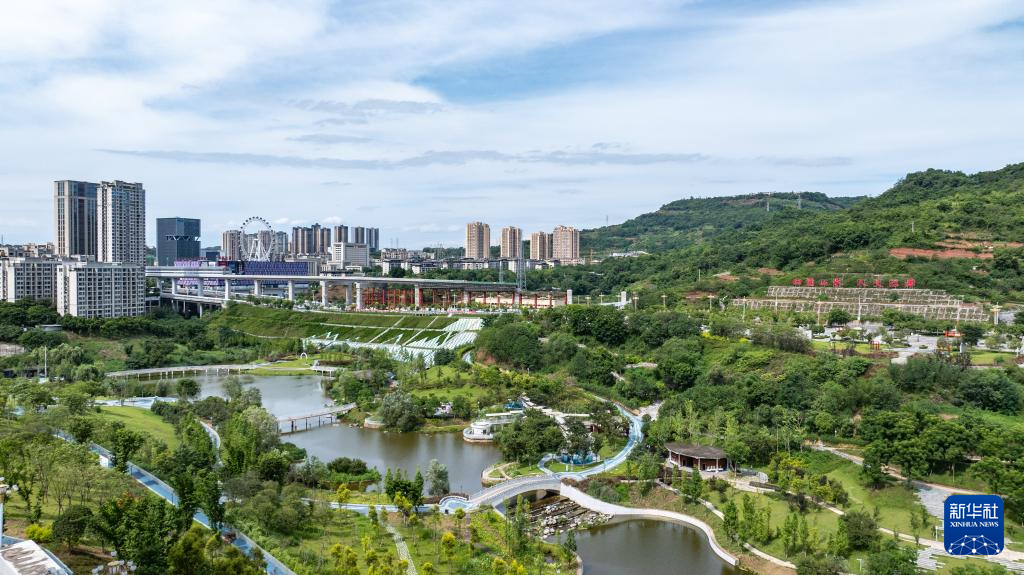 这是7月3日拍摄的重庆市江津区城市公园风光(无人机照片)。