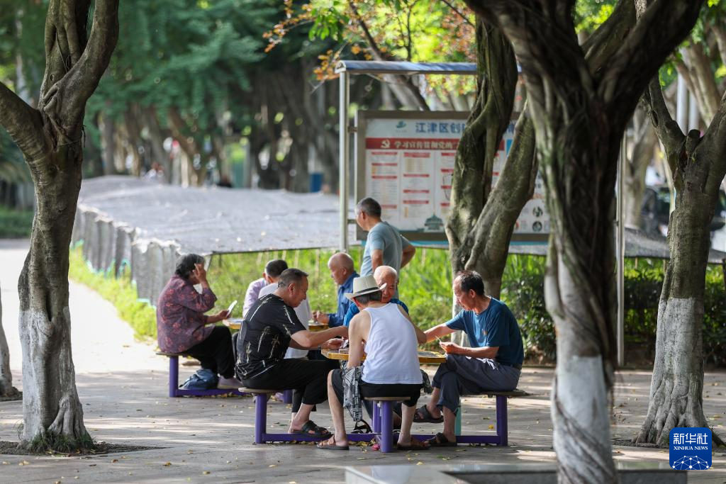 7月3日,在重庆市江津区,群众在滨江路上休闲乘凉。