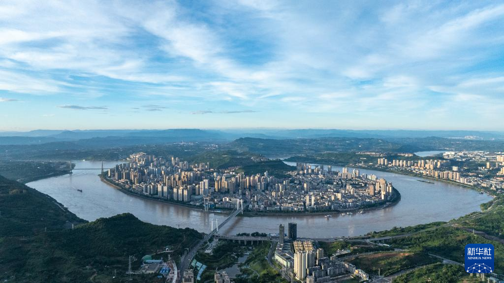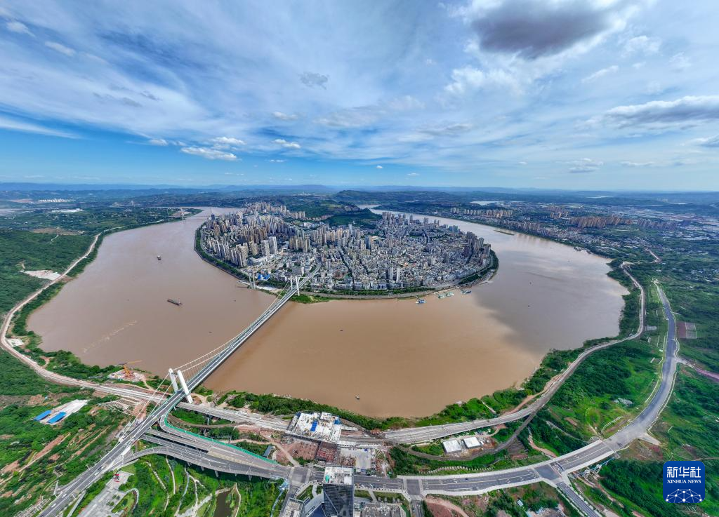 这是7月3日拍摄的重庆市江津区几江半岛风光(无人机全景照片)。