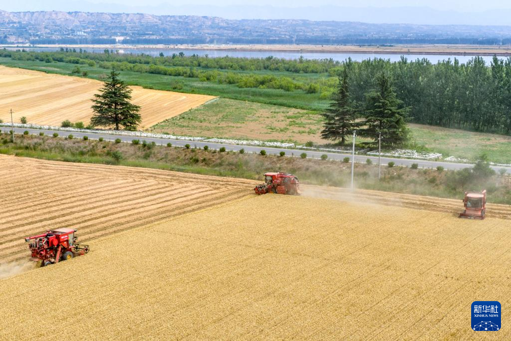 6月5日,河南省焦作市温县武德镇农民驾驶收割机收获小麦。