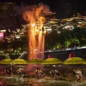 位于湖北省恩施土家族苗族自治州的宣恩县城是一座“景城一体·主客共享”的国家4A级景区,穿城而过的贡水河两岸夜景远近闻名。近年来,当地围绕贡水河“夜游”做足观赏、体验文章,不断推陈出新的“龙游贡水”竹筏、乌篷船、水上夜宴以及水上飞人、水上火壶、打铁花等体验和观赏项目,让游客在璀璨灯火中沉浸式感受山区小城的夜色魅力。
