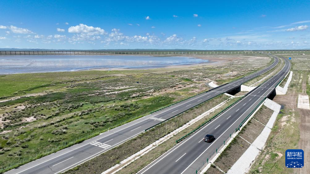 7月10日,车辆行驶在国道331线内蒙古锡林郭勒盟东乌珠穆沁旗段(无人机照片)。