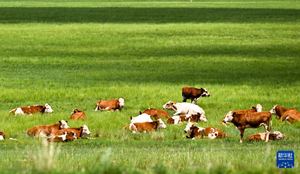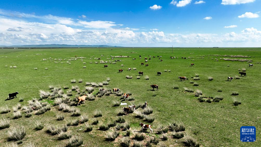 7月10日拍摄的内蒙古锡林郭勒盟东乌珠穆沁旗草原上的牛群。