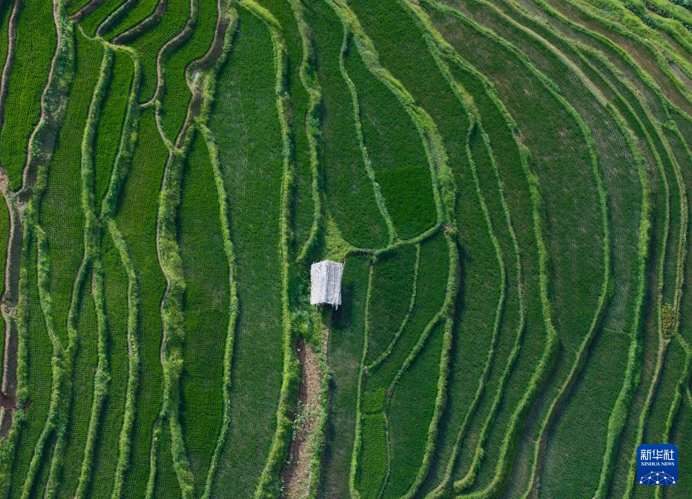 7月9日俯拍的米易县新山傈僳族乡新山村梯田(无人机照片)。