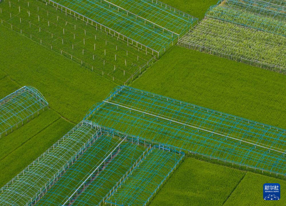 7月的四川安宁河河谷,高标准农田里的农作物绿意盎然、长势喜人,在蓝天白云的映衬下,构成一幅幅美丽的田园画卷。