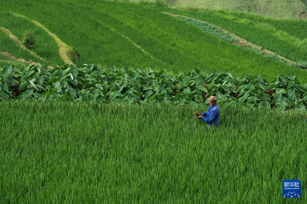 7月9日,村民在米易县新山傈僳族乡新山村梯田劳作。