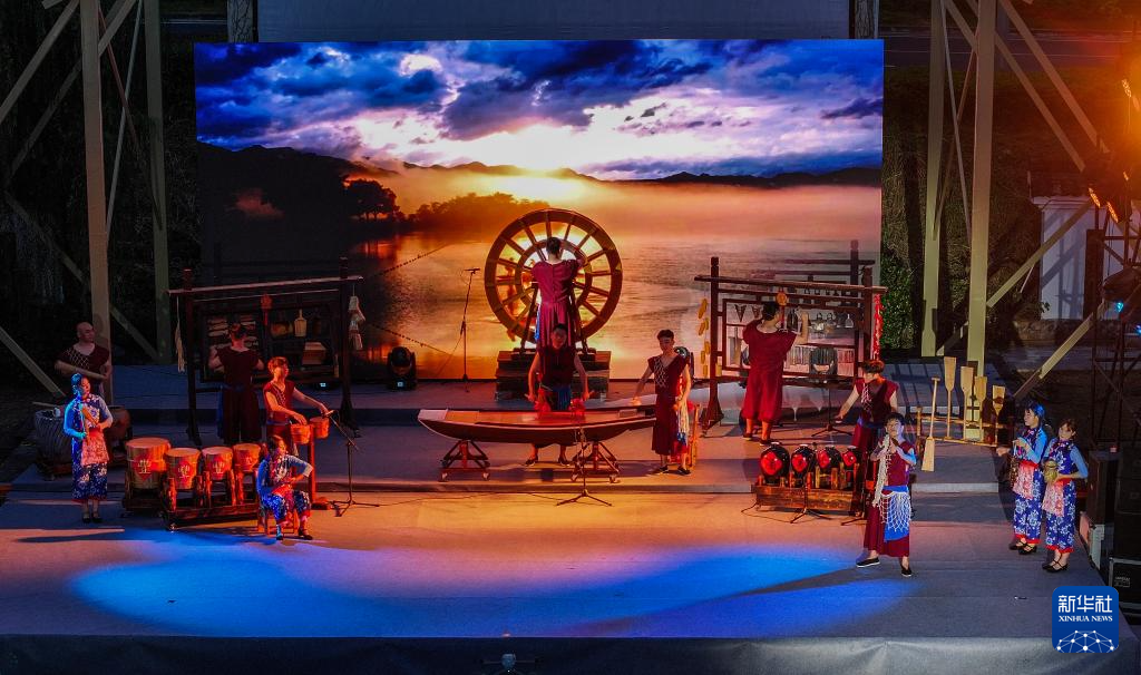 7月11日,三都镇乡村音乐学校的村民们在演奏空灵鼓。