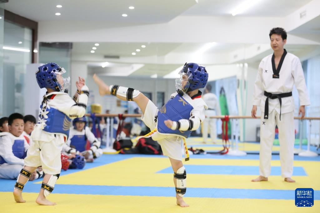 7月10日,在四川省乐山市市中区通江街道春华路一家跆拳道武术馆内,学生在进行训练。