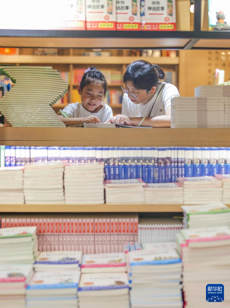 7月12日,在山东省荣成市新世纪城市书房内,学生和家长在阅读书籍。