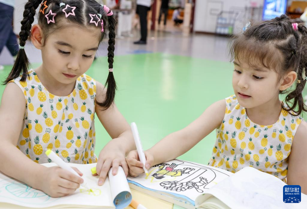 7月12日,孩子在湖北省少年儿童图书馆学习绘画。