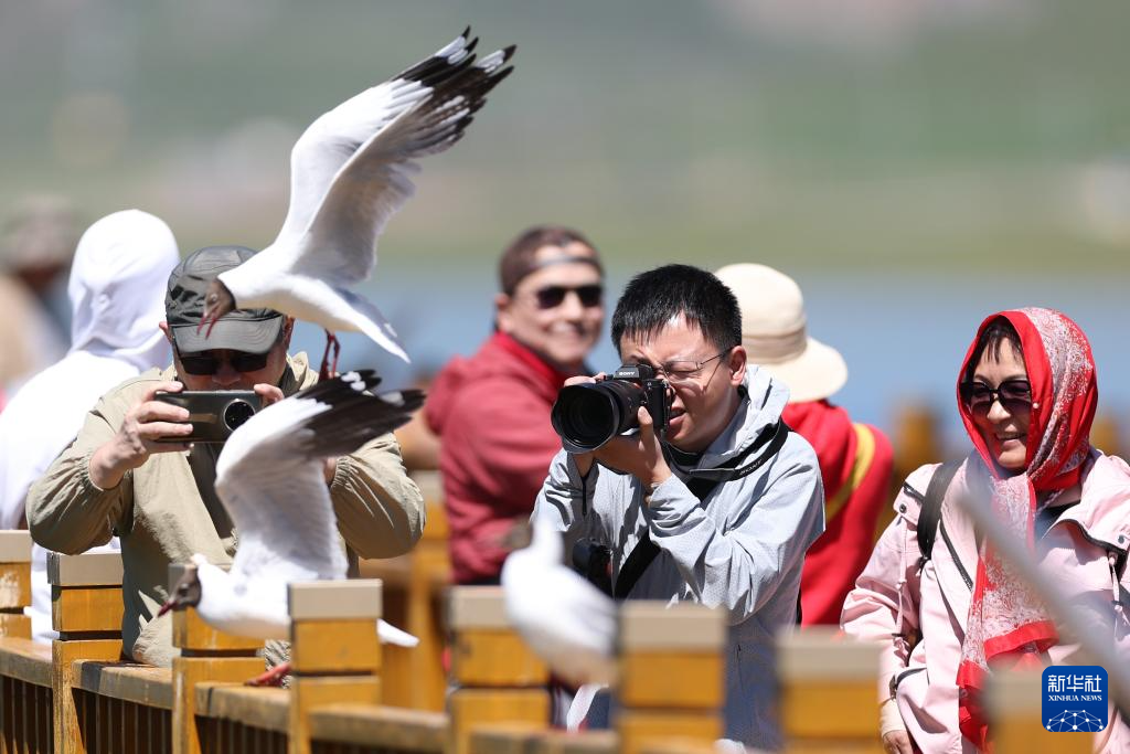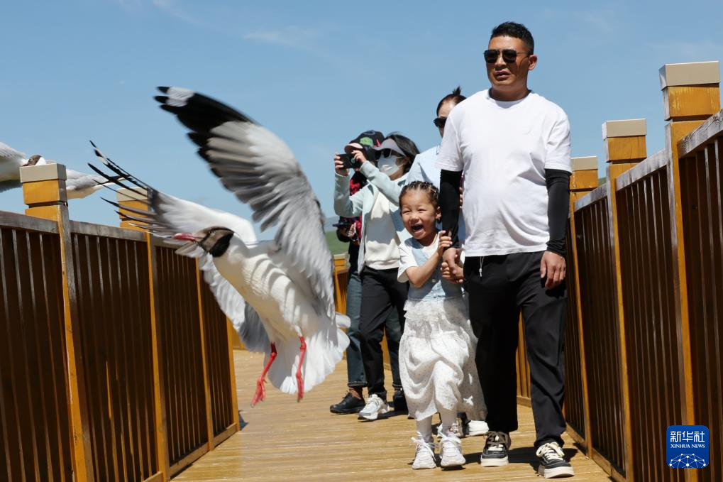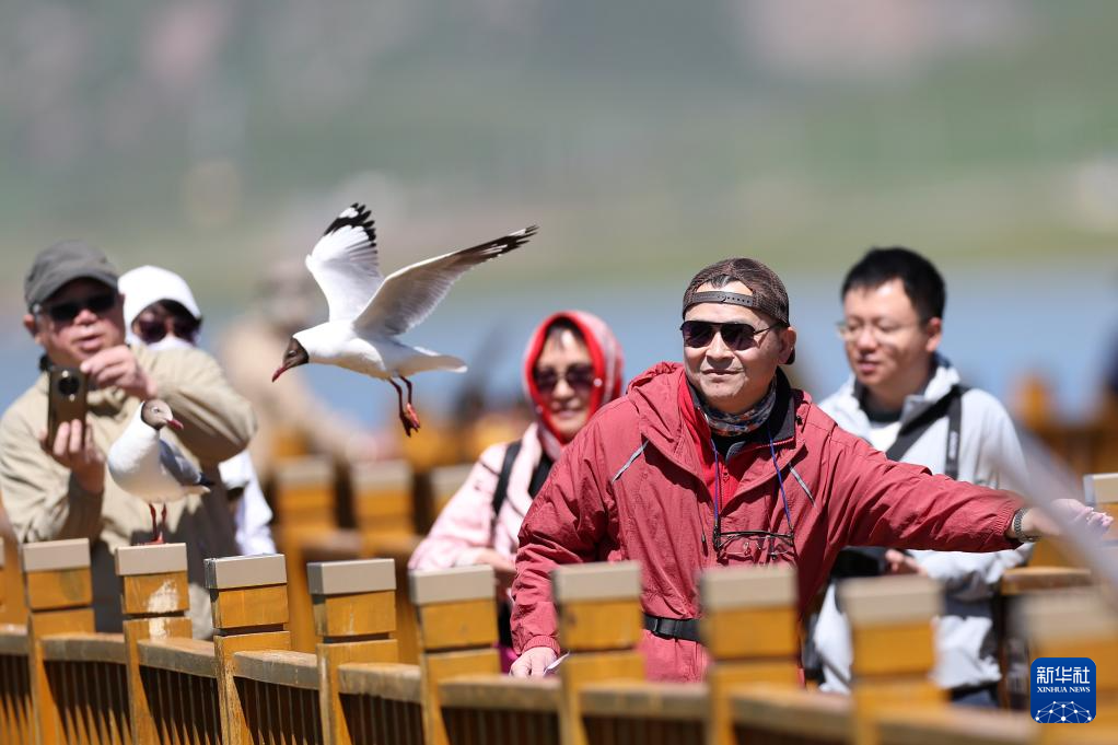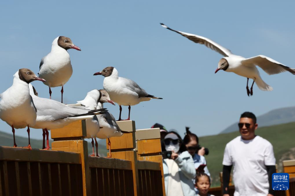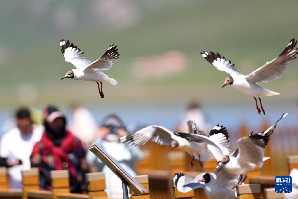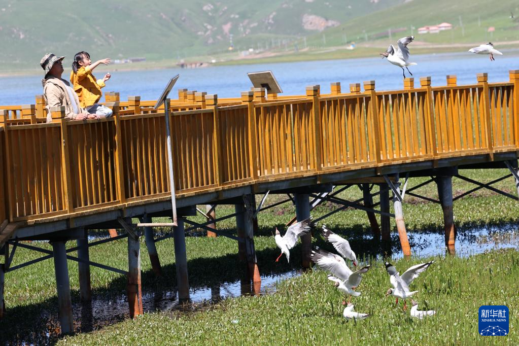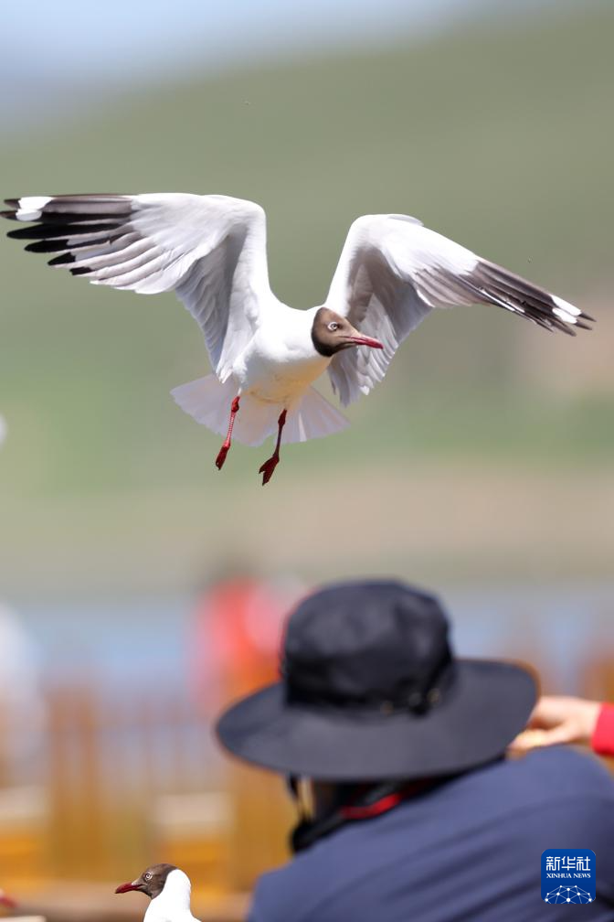 夏日里,平均海拔3500多米的甘肃省甘南藏族自治州碌曲县尕海湿地风光迷人,鸥鸟翔集。游客与在此觅食嬉戏的棕头鸥近距离接触,人鸥和谐共生的画面成为高原湿地的一张靓丽名片。
