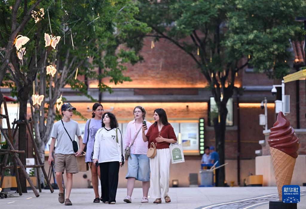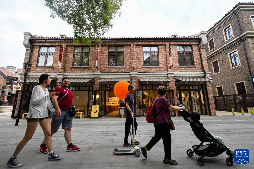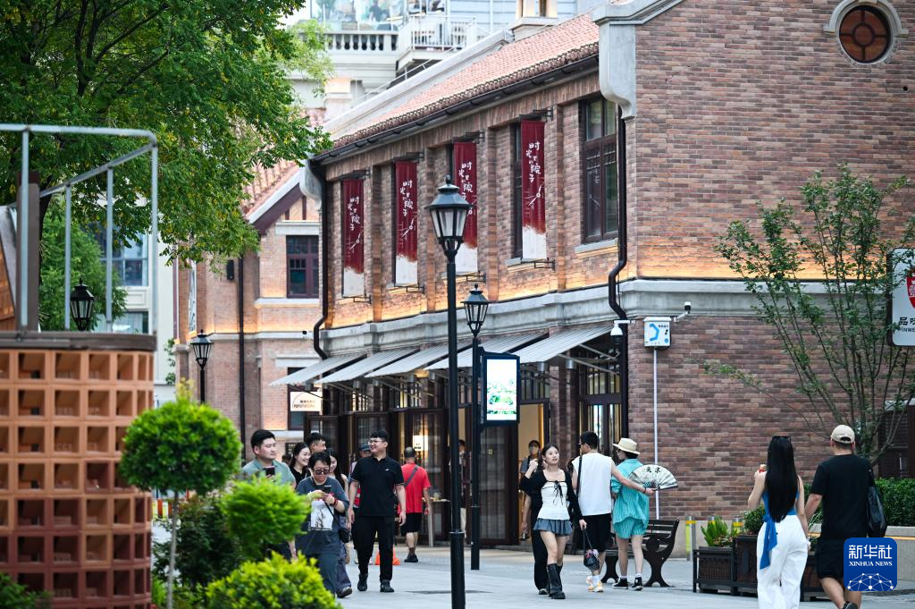 游客在天津五大道步行街散步休闲(7月9日摄)。