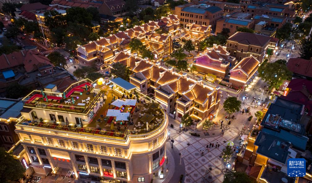 这是7月11日拍摄的位于天津五大道文化旅游区的“民园1920街区”一景(无人机照片)。