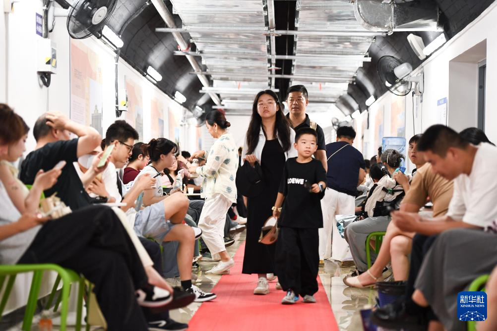 7月13日,人们在南京北极岩人防工程避暑纳凉。