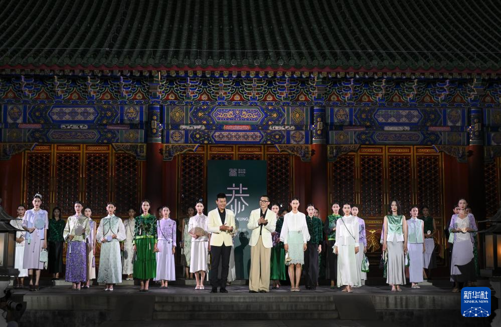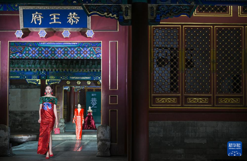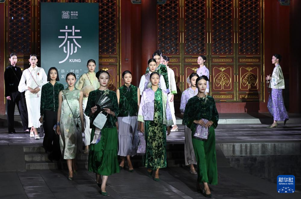 7月14日,由文化和旅游部恭王府博物馆主办的“恭·时尚”品牌发布仪式在北京恭王府举行。发布仪式上推出的37套概念服饰和35套新中式成衣及配饰,是设计师运用恭王府紫藤垂蔓的流动线条、海棠花窗的几何纹样、竹子院中的竹林光影以及“天下第一福”等经典元素,融合古法缠花、盘金刺绣等非遗技艺制作而成。