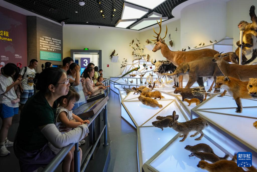 7月15日,游客在澄江化石地世界自然遗产博物馆参观动物标本。