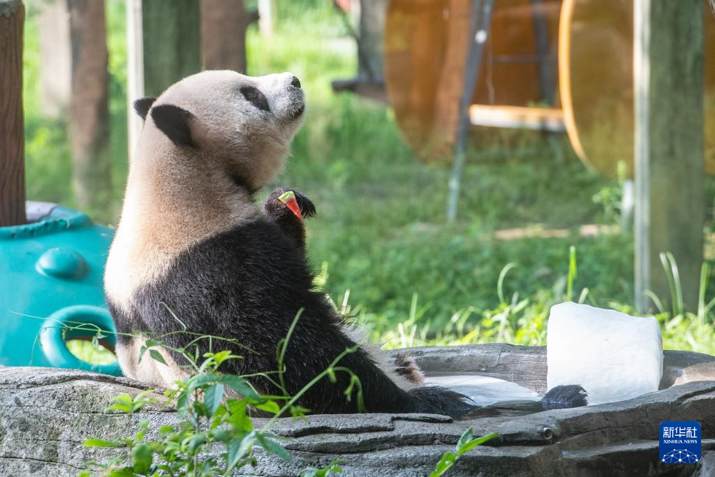 近日,重庆高温天气持续,重庆动物园通过给动物泡冰水、吹空调、喂西瓜等多种方式,让动物安然度夏。动物园还专门针对高温天气调整饲料结构,不仅准备了西瓜、黄瓜等富含水分与维生素的果蔬,还提供绿豆汤供动物饮用。