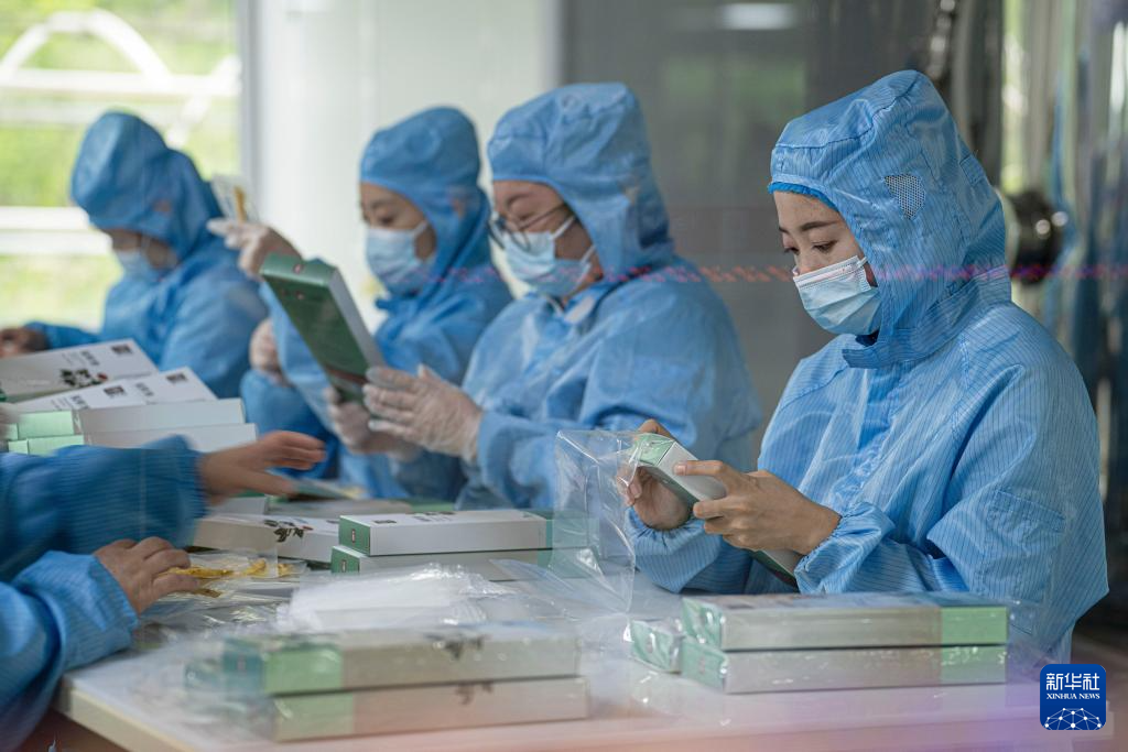 7月15日,吉林省永吉县博大农科公司人参加工厂,工人在无菌车间里包装人参产品。