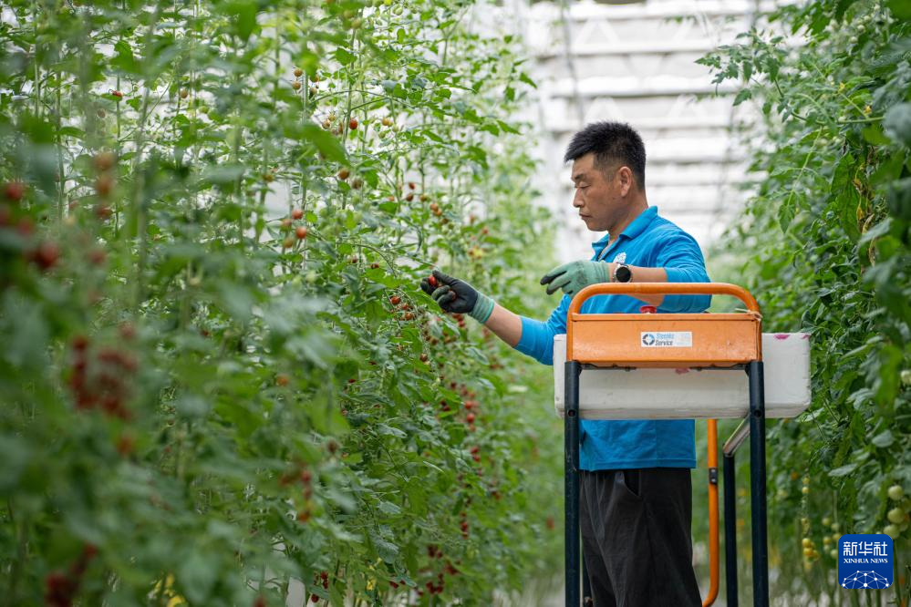 7月15日,吉林省永吉县卓远植物工厂,员工在采摘小番茄。