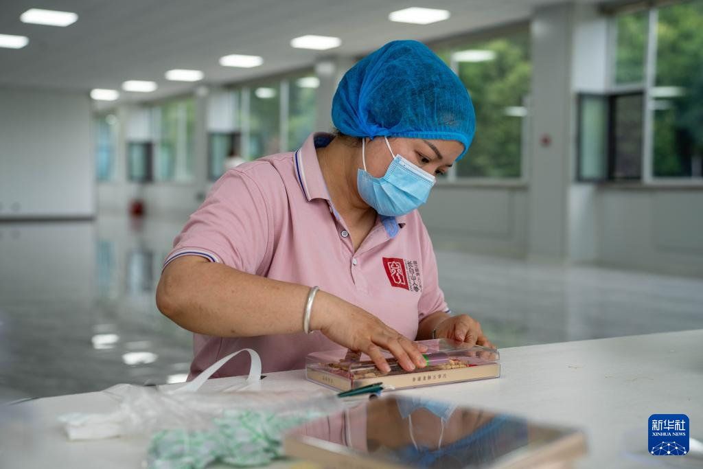 7月15日,吉林省永吉县博大农科公司人参加工厂,工人在包装人参礼盒。