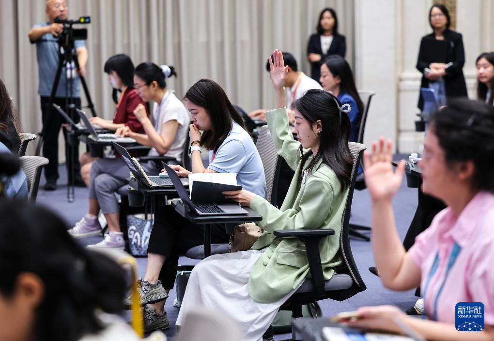 7月17日,国务院新闻办公室举行“高质量完成‘十四五’规划”系列主题新闻发布会。国家知识产权局局长申长雨、国家知识产权局副局长胡文辉、国家知识产权局战略规划司司长梁心新、国家知识产权局知识产权运用促进司司长王培章介绍“十四五”时期知识产权强国建设新进展新成效,并答记者问。这是记者在提问。