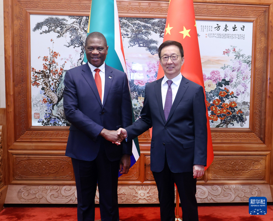 7月17日,国家副主席韩正在北京会见南非副总统马沙蒂莱。