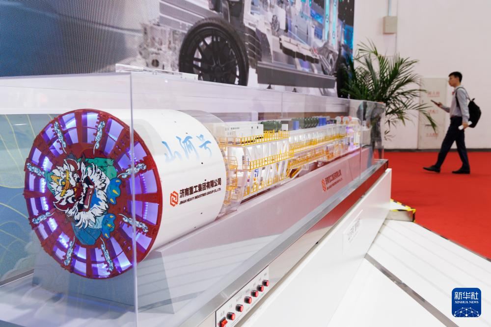 7月17日在第三届中国国际供应链促进博览会主宾省山东省展台拍摄的“山河号”盾构机。
