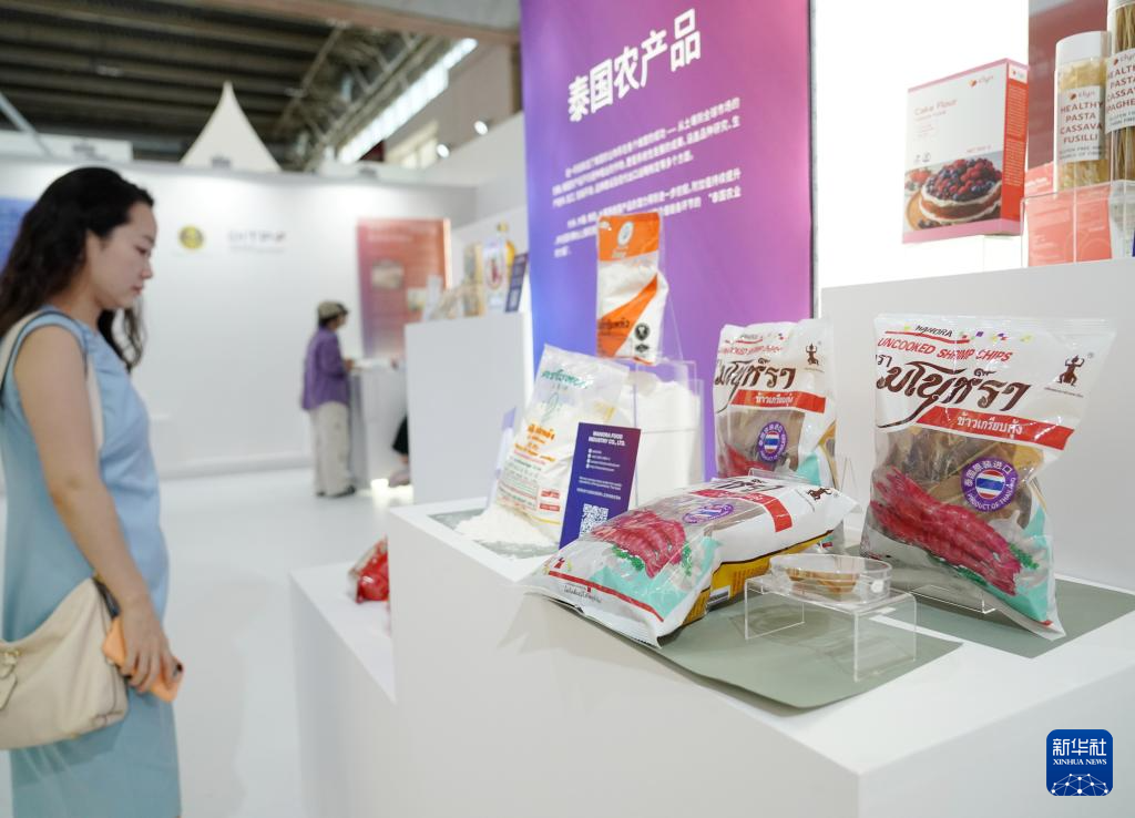 这是7月18日在绿色农业链展区拍摄的泰国农产品。